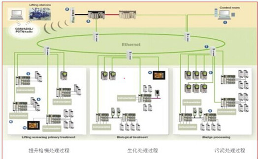 1、自動(dòng)化控制系統(tǒng)構(gòu)成 凈水廠的綜合自動(dòng)化監(jiān)控系統(tǒng)通常分為設(shè)備層、控制層及管理層三層結(jié)構(gòu)?刂茖油瓿删唧w的取水、混凝、沉淀、過濾、送水等環(huán)節(jié)的測控;管理層主要負(fù)責(zé)狀態(tài)監(jiān)控、數(shù)據(jù)采集、故障報(bào)警處理等工作?刂茖拥母鞴に嚟h(huán)節(jié)位置分散,位于中控室的控制中心將進(jìn)行統(tǒng)一監(jiān)控,因此具有集中監(jiān)控、分散控制的特點(diǎn)。